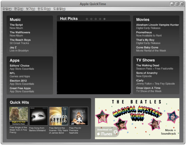 MOV포맷은 QuickTime만의 전용포맷으로 Windows Media Player등의 다른 재생기로는 볼 수 없습니다.
