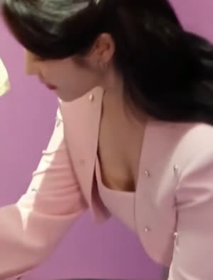 아이유 살짝 숙인 가슴골