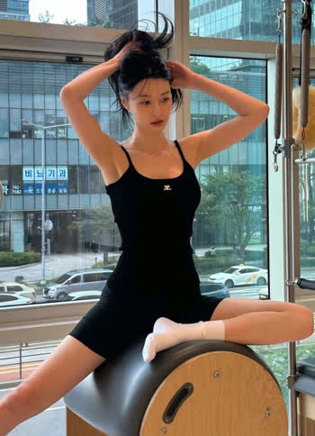 필라테스 하는 권나라 끈나시 숏레깅스 몸매