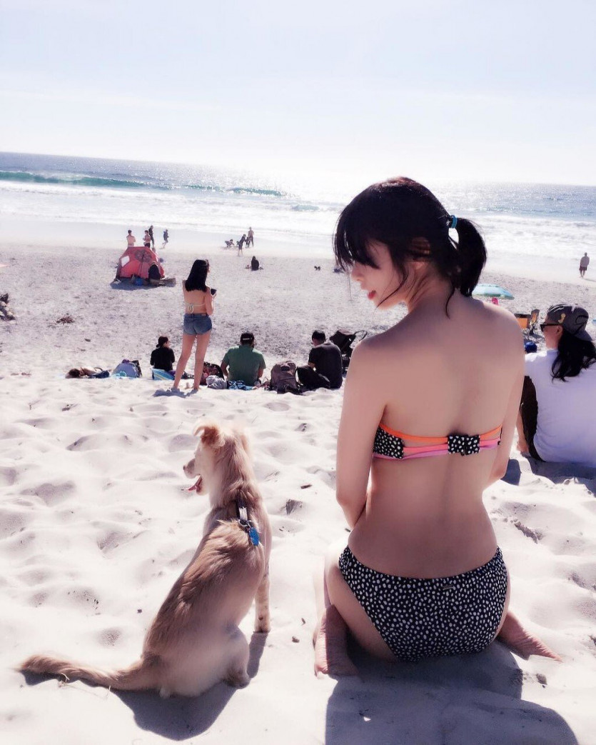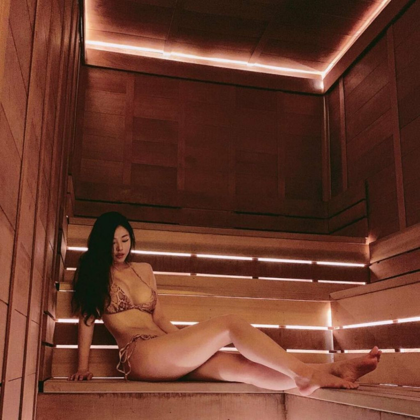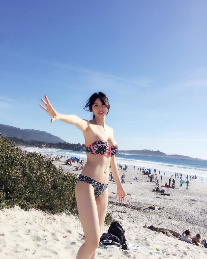 에이핑크 오하영 섹시한 가죽 나시 가슴골