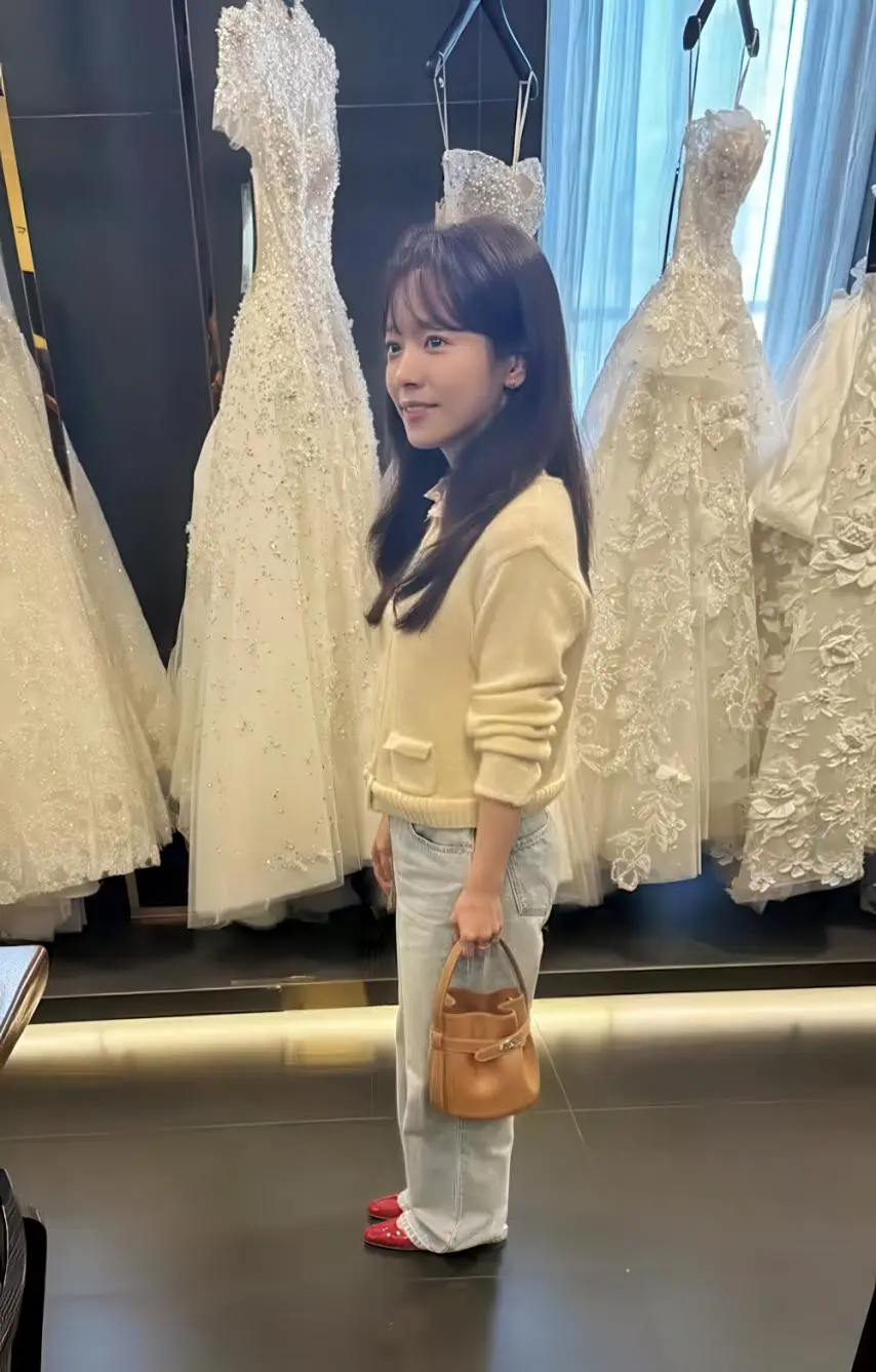 에스파 카리나 실크 옆트임 주름 롱드레스 뒤태