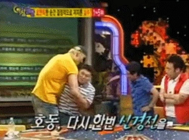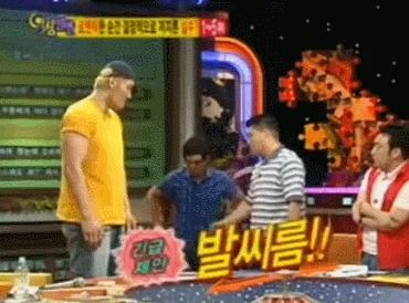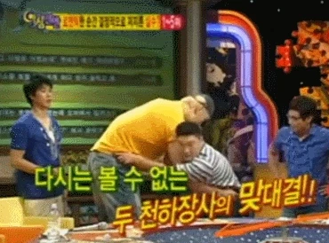예능에서 25살 최홍만과 힘대결 해보는 35살 강호동...GIF