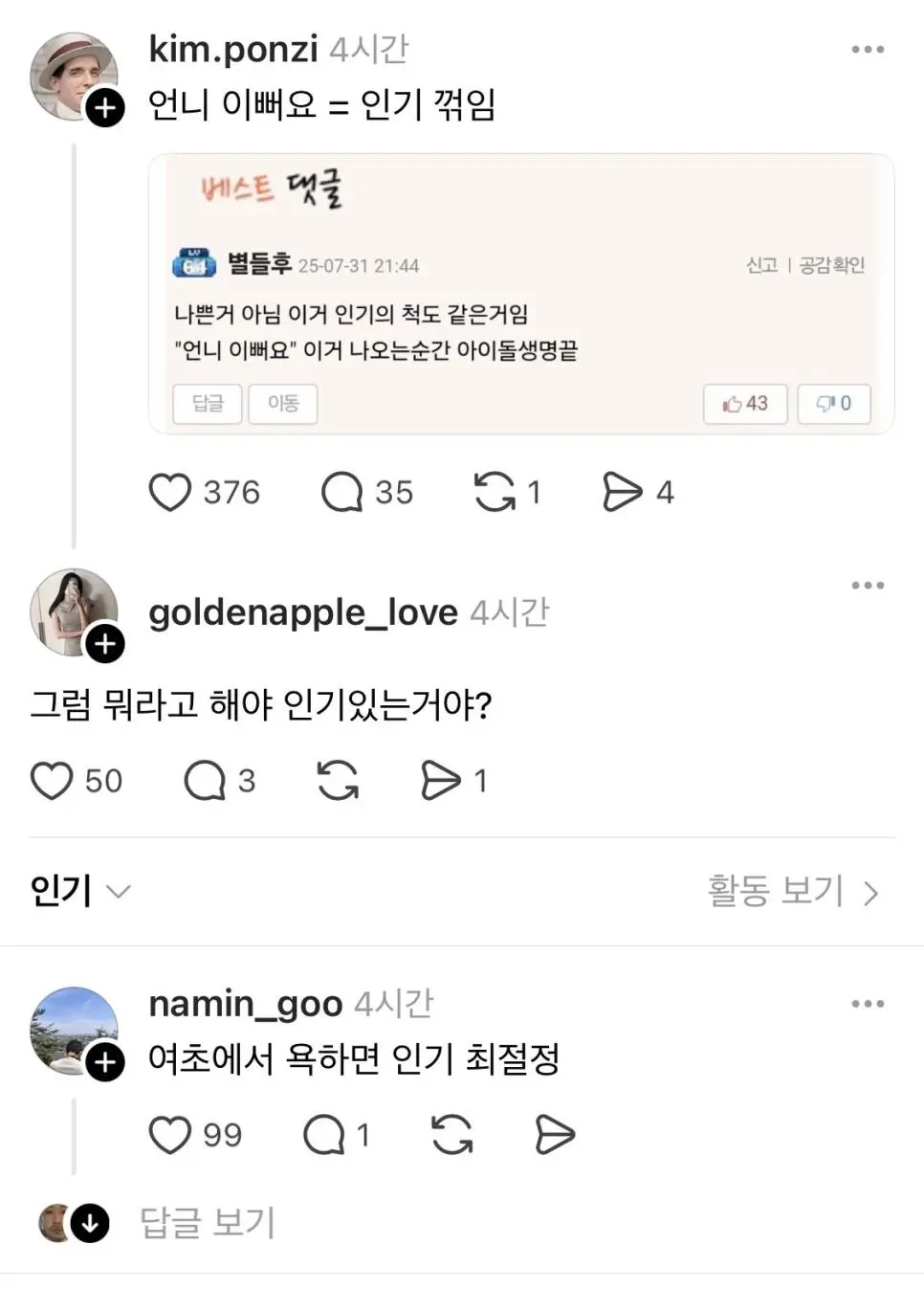 “언니 예뻐요” 나온다? = 그 여자 아이돌 인기 꺾인 것.jpg