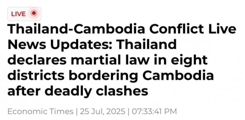 &lt;속보&gt; 캄보디아와 관계악화로 태국, 8개지역에 계엄령 선포.jpg