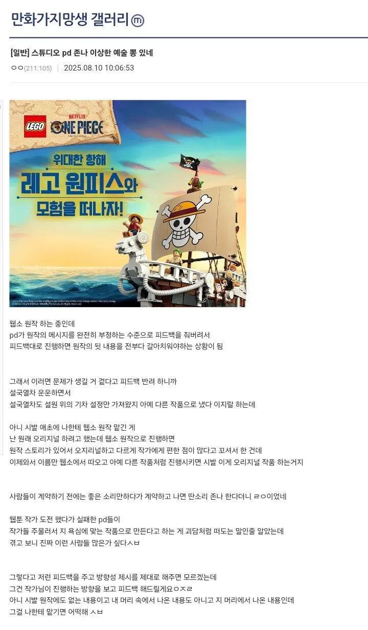 예술병 걸린 편집자 때문에 빡친 웹툰작가
