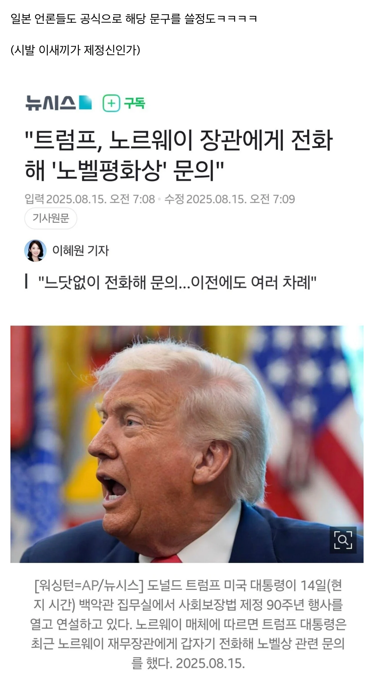 트럼프 : "노벨평화상 갖고싶다"