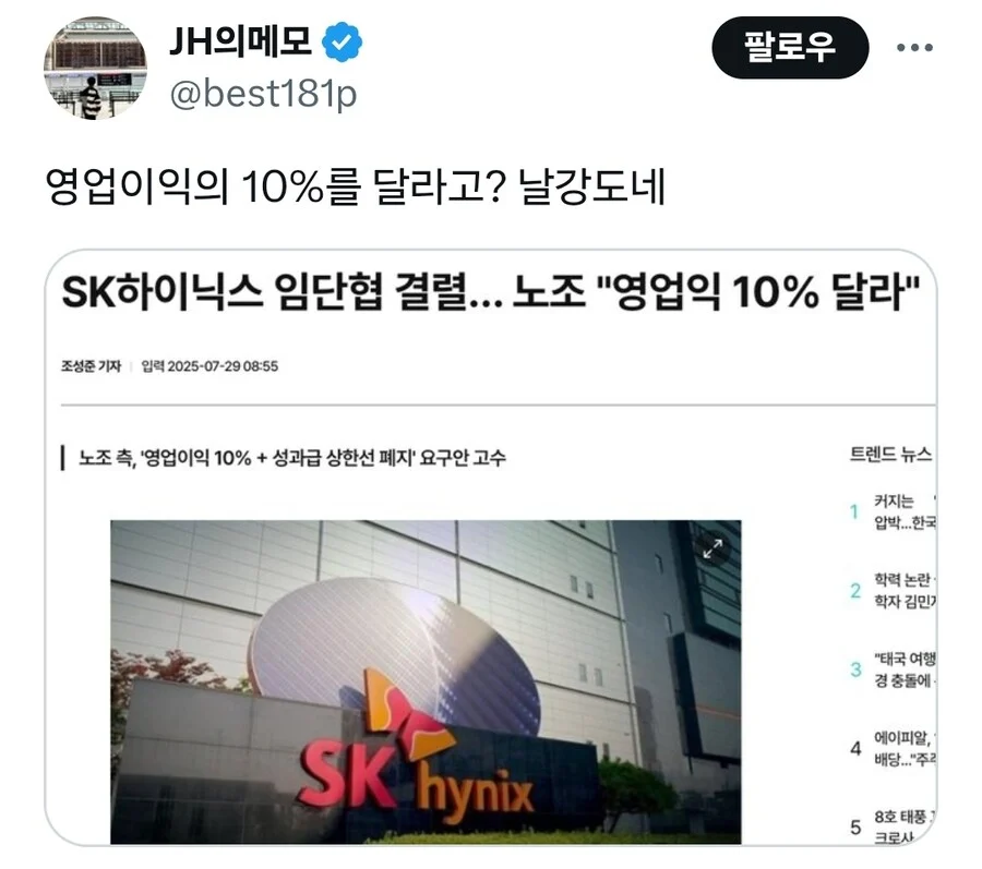 "어마어마한 성과급 제시했는데"...뿔난 SK하이닉스 노조