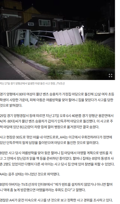 80대 벤츠 운전 미숙으로 동네 주민 12살 손녀 사망...