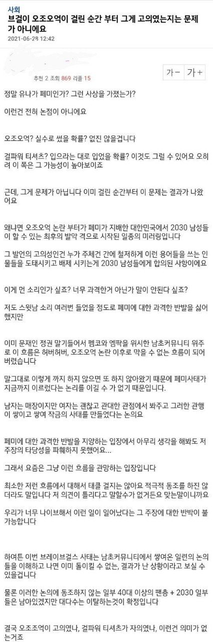 이미 시간이 좀 지난글이지만 단순 억까는아닌거같기도