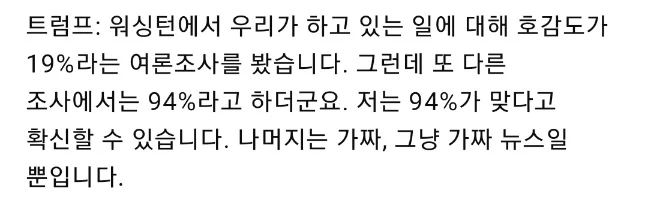 트럼프, "내 호감도 낮은 조사는 가짜"