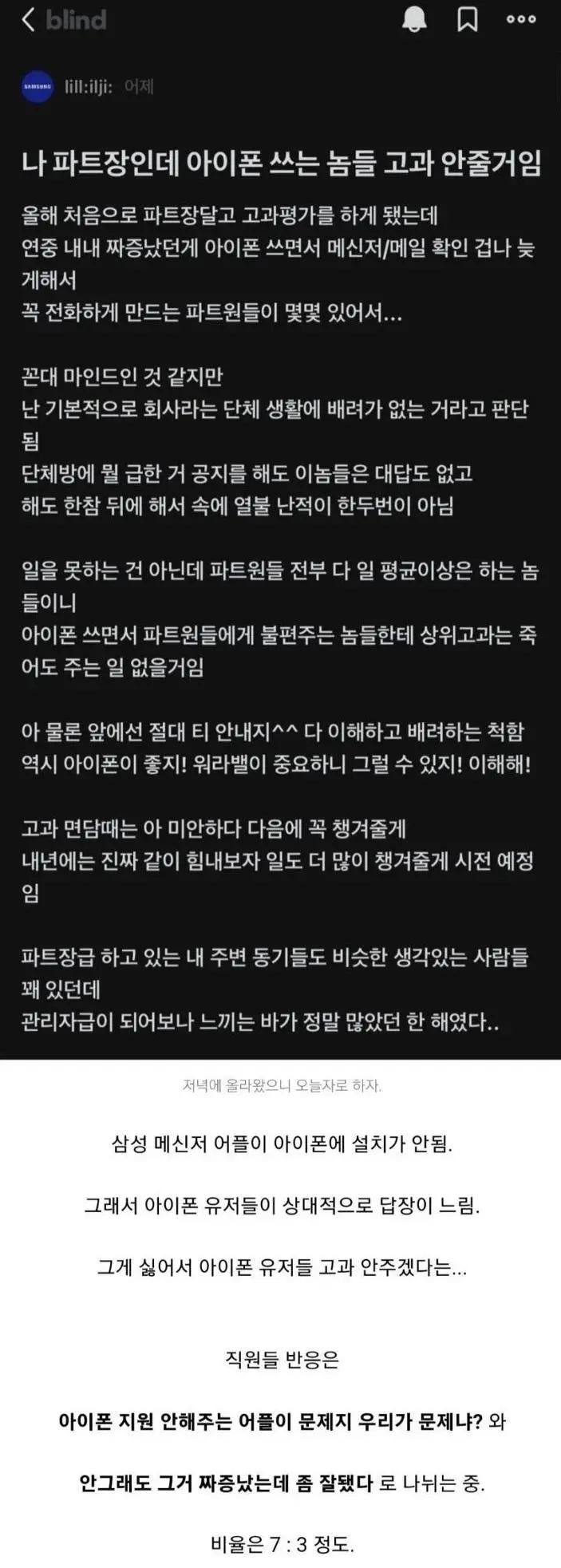 아이폰 쓰는 직원 인사고과 안 줄거임