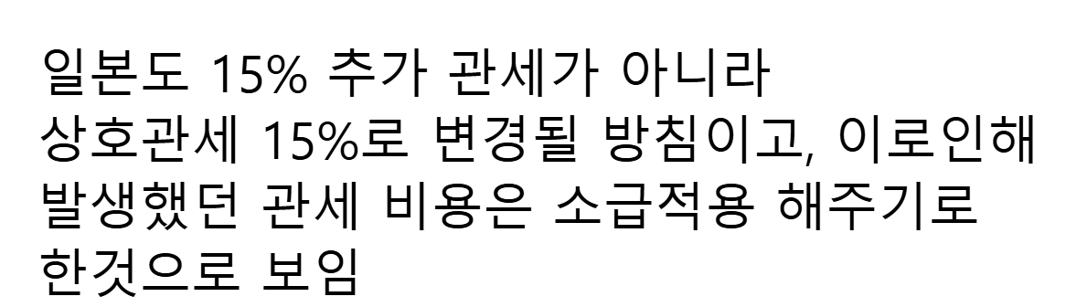일본 15% 추가관세가 아닌 상호관세로 경감조치.