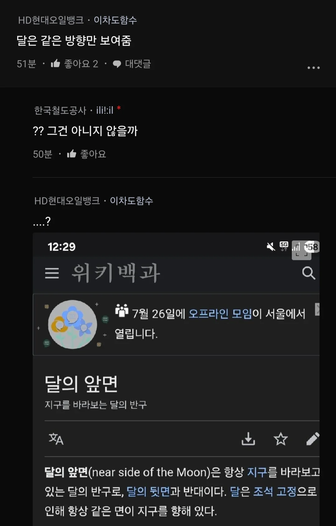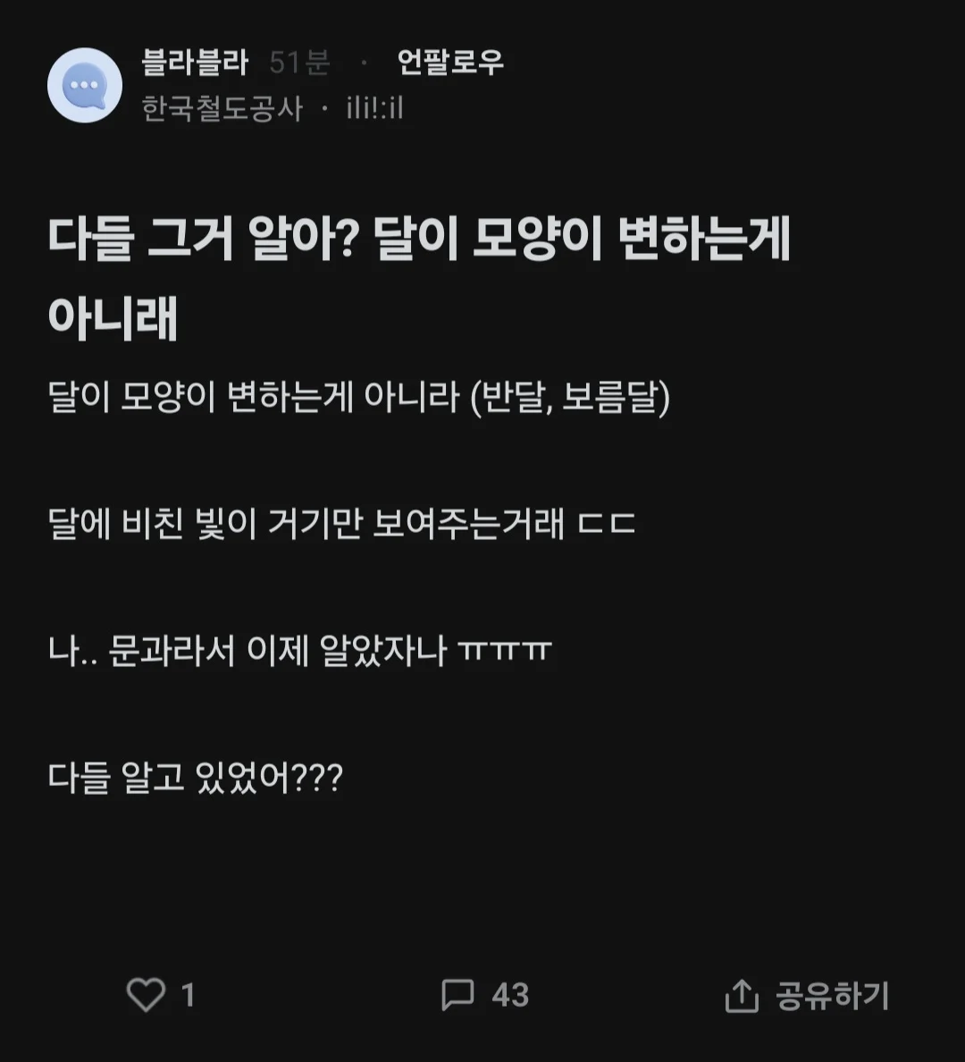 ??? : 다들 그거 알아? 달이 모양이 변하는게 아니래
