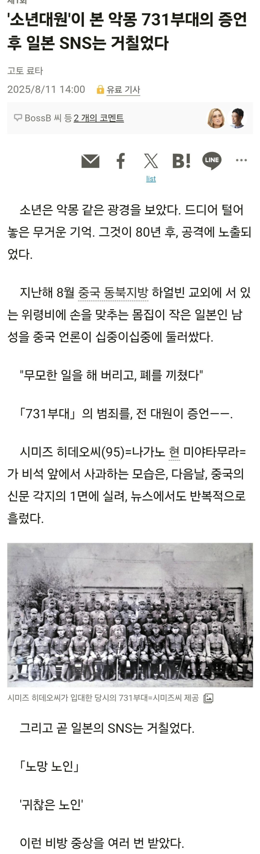 731 부대에 대해 증언한 일본인.