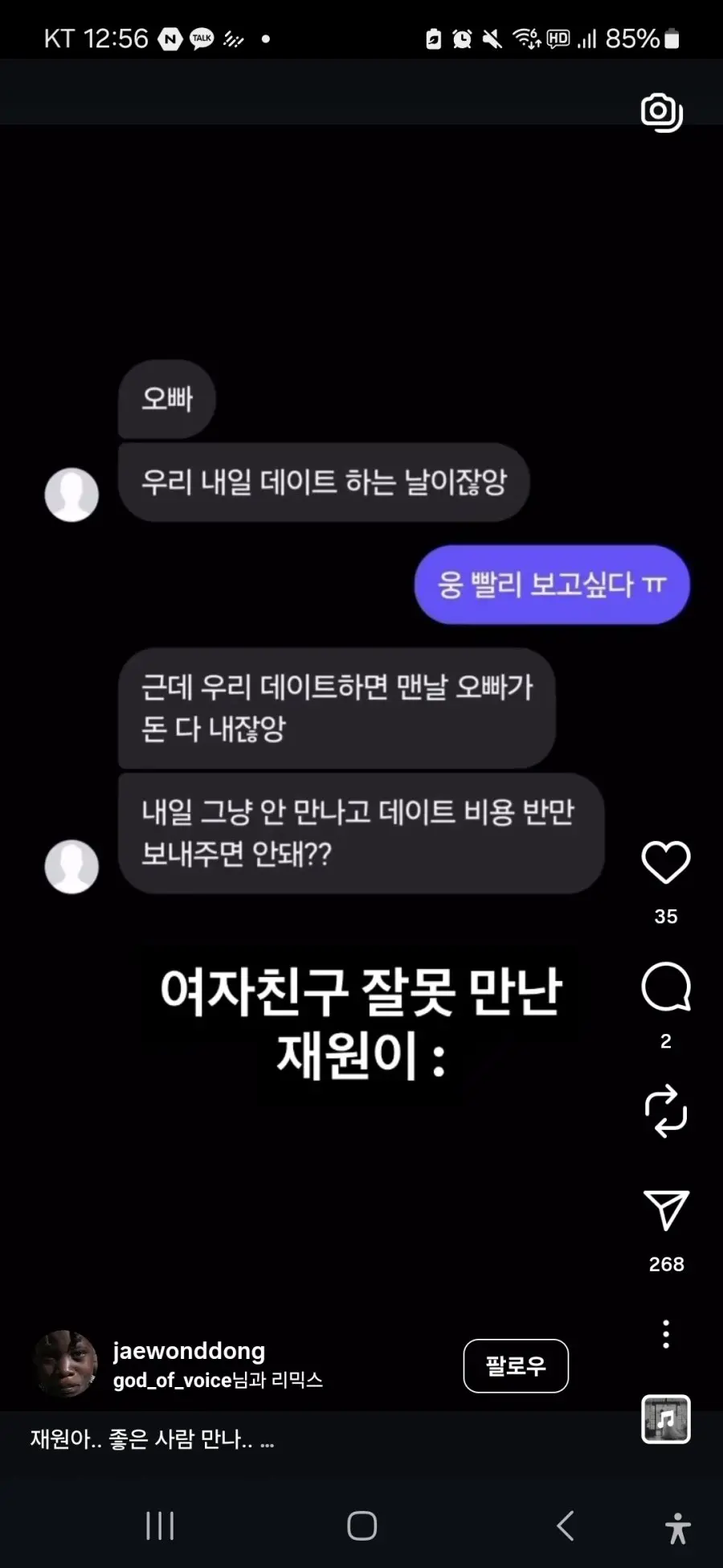 이제 없다 생각하고 데이트 비용 아낀 셈 치면 되겠다!