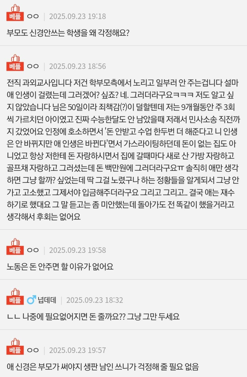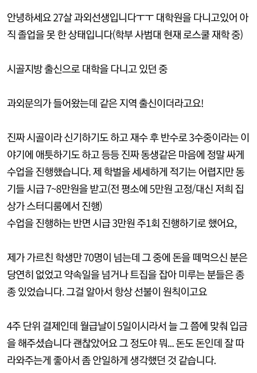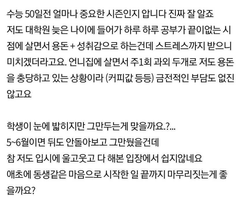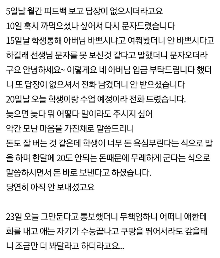 수업료 밀렸다고 수능 50일 남은 지금 안 온다는 과외선생