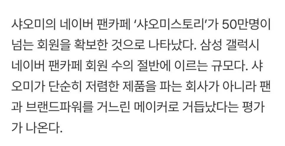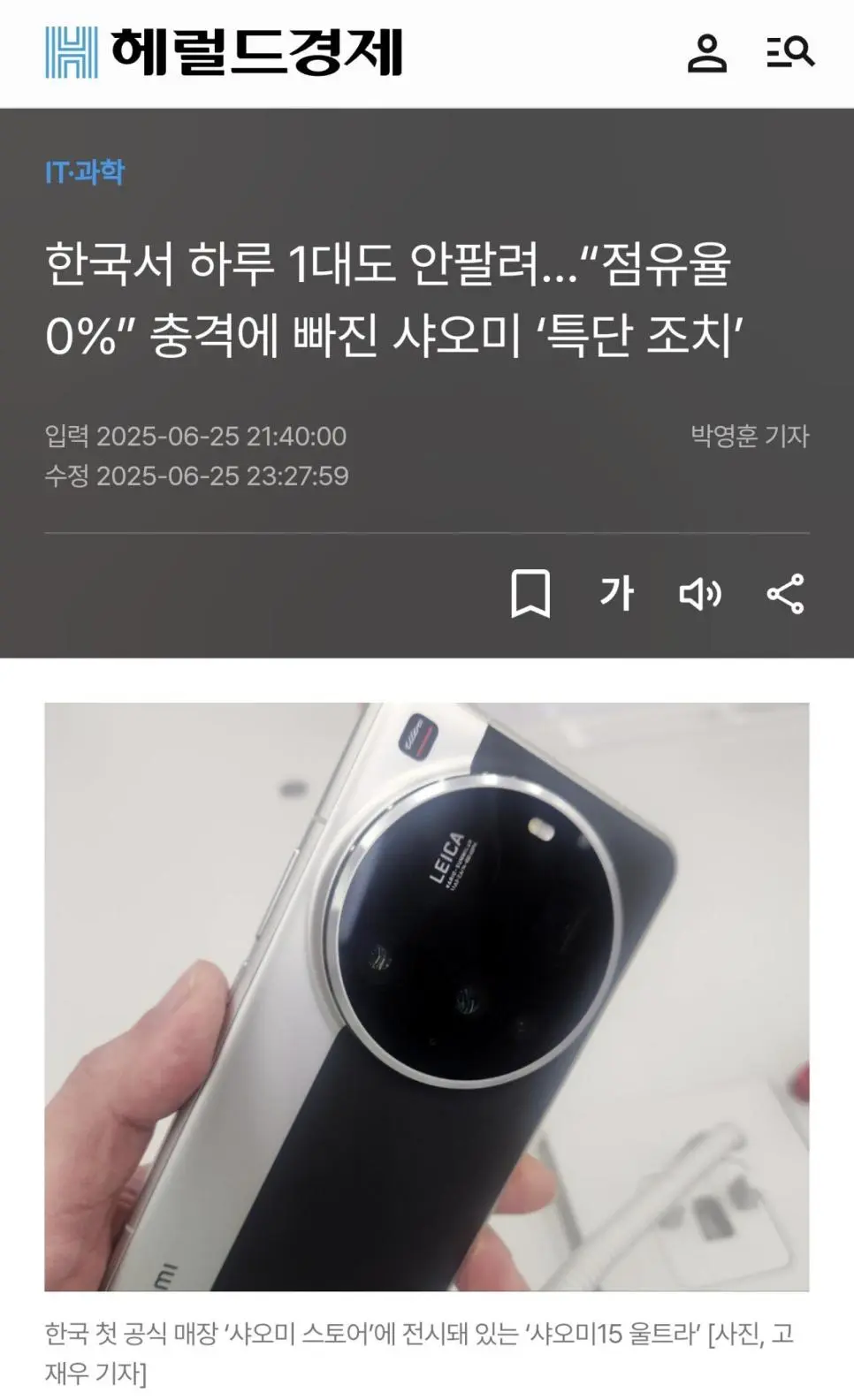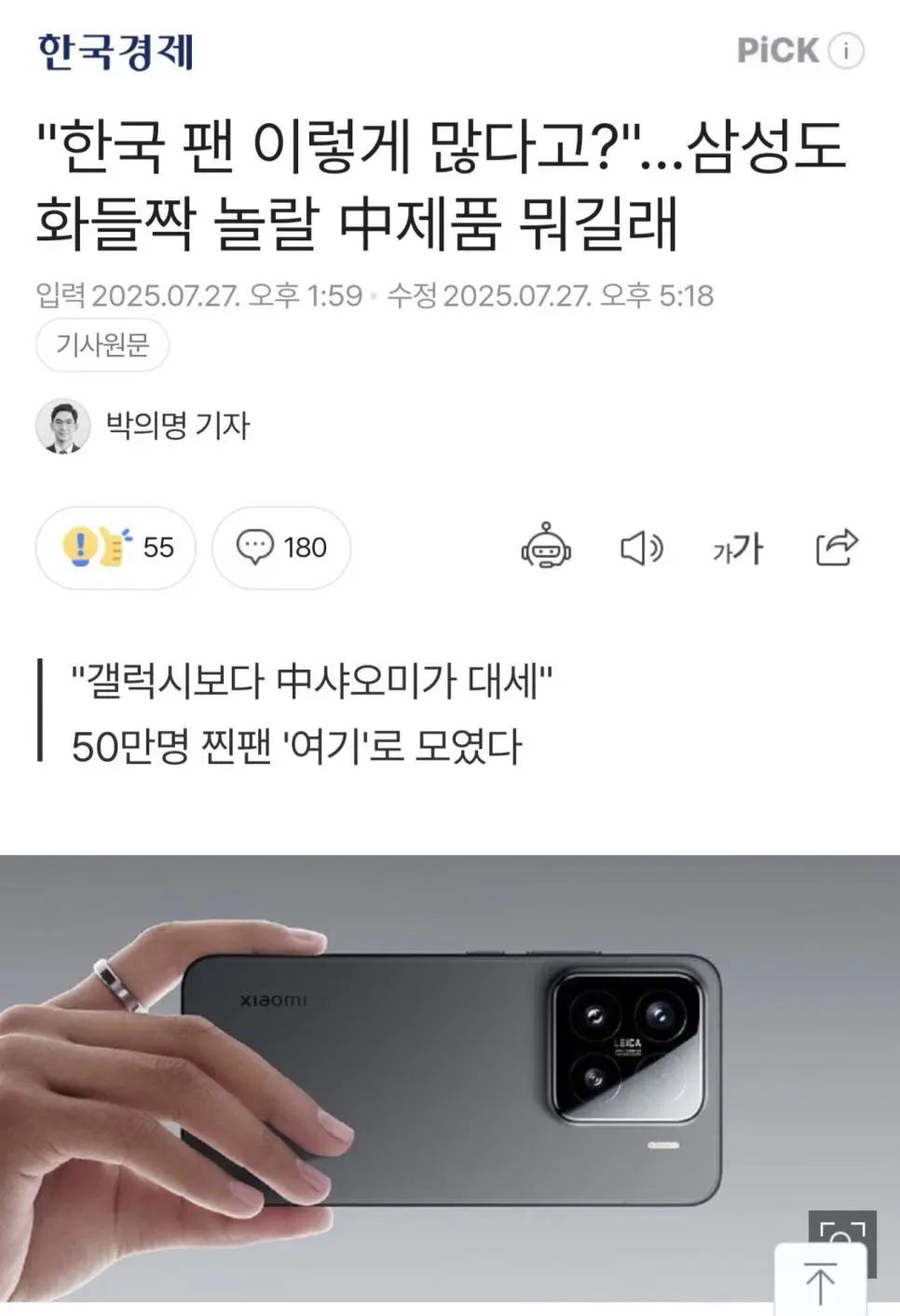 지금 한국은 갤럭시보다 中샤오미가 대세… 50만명 규모의 팬카페도... 리아사쿠라이 0 1007 0 0 07.28 07:00 주소복사 복사되었습니다! 주변이고 길거리고 어디서도 샤오미 폰 쓰는 사람을 본 적이 없는데 팬카페도 있다고...? 찾아보니 저 카페는 실제로 있으며 50만명의 회원을 보유한 건 맞지만 샤오미의 다른 제품인 청소기, 선풍기, 공기청정기, 공유기, 보조배터리 관련된 얘기만 하는 카페다... 흠 그러면 어디 그렇게 잘 나간다는 샤오미 폰의 전월 실적 좀 볼까? 그만 알아보도록 하자 0 0