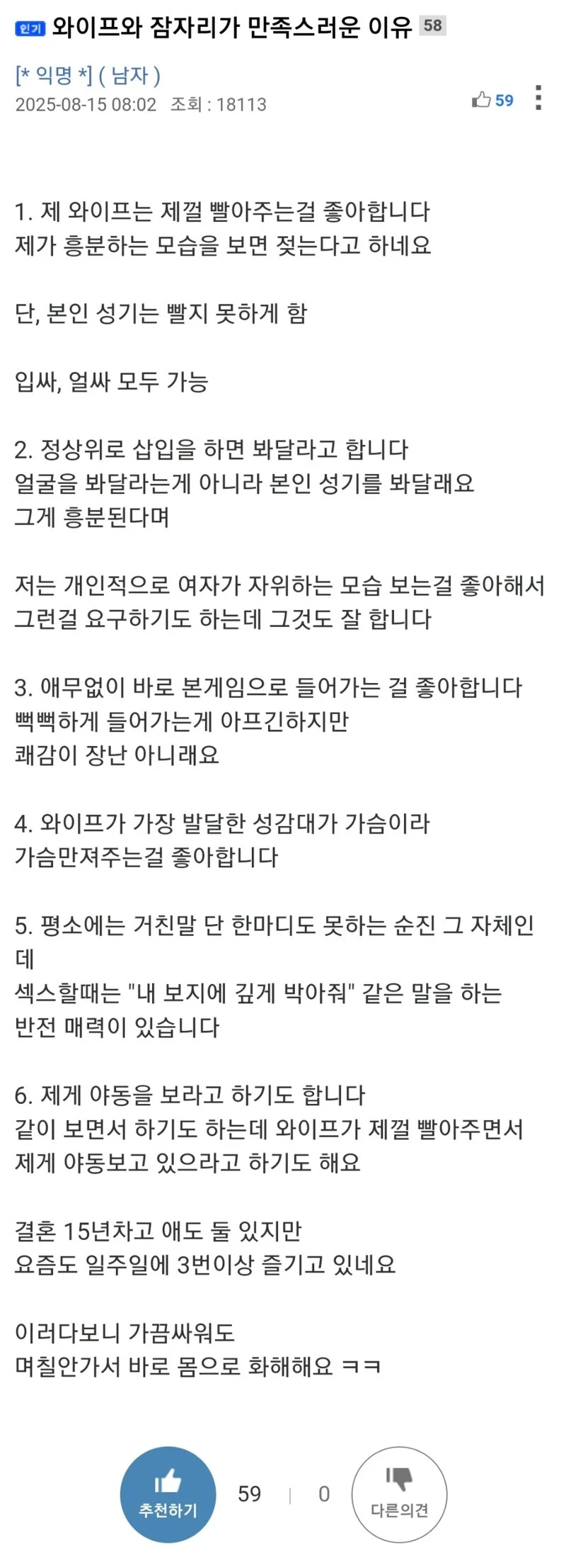 와이프와 잠자리가 만족스러운 이유