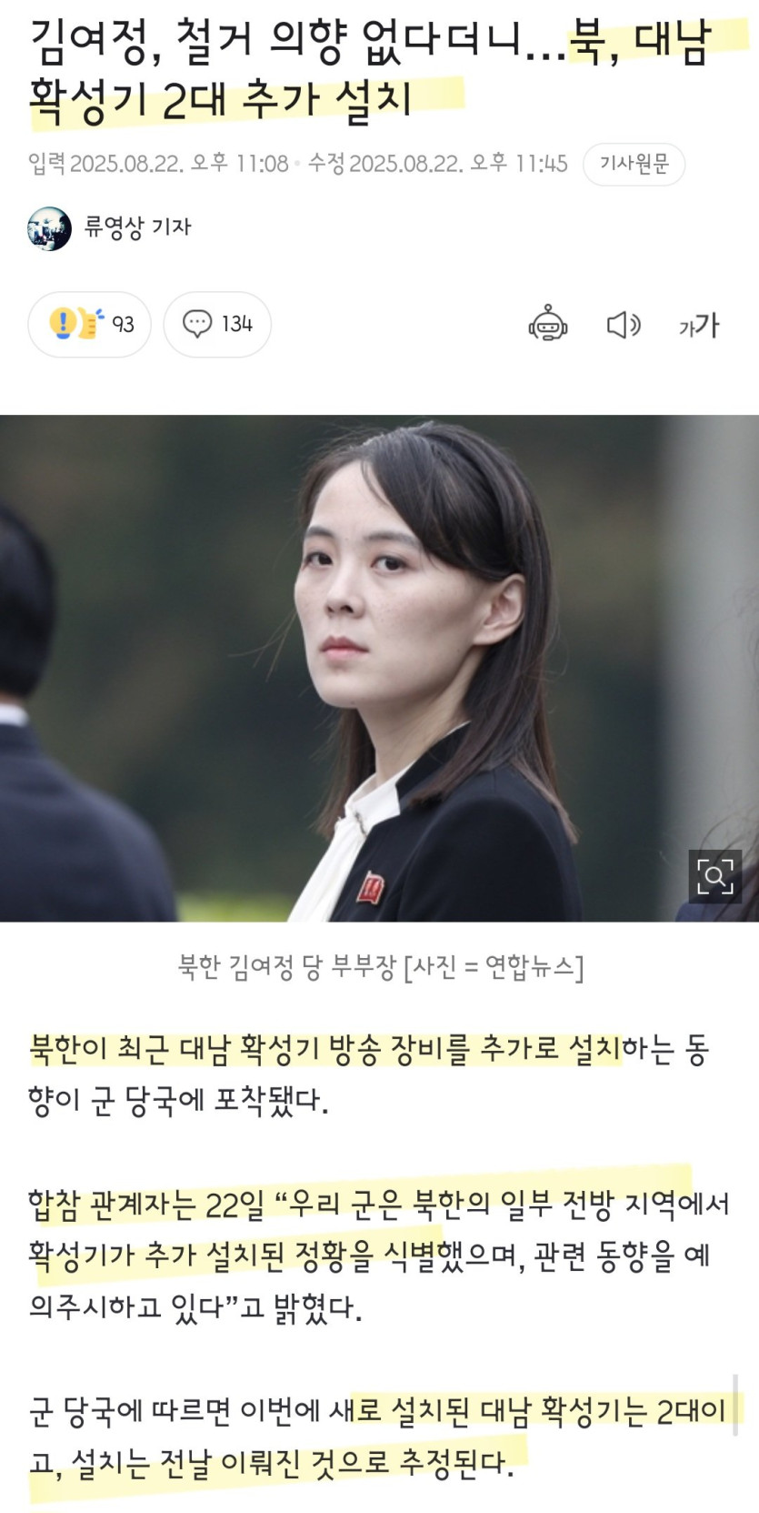 북한, 대남 확성기 2대 추가 설치 ㄷㄷㄷㄷㄷ