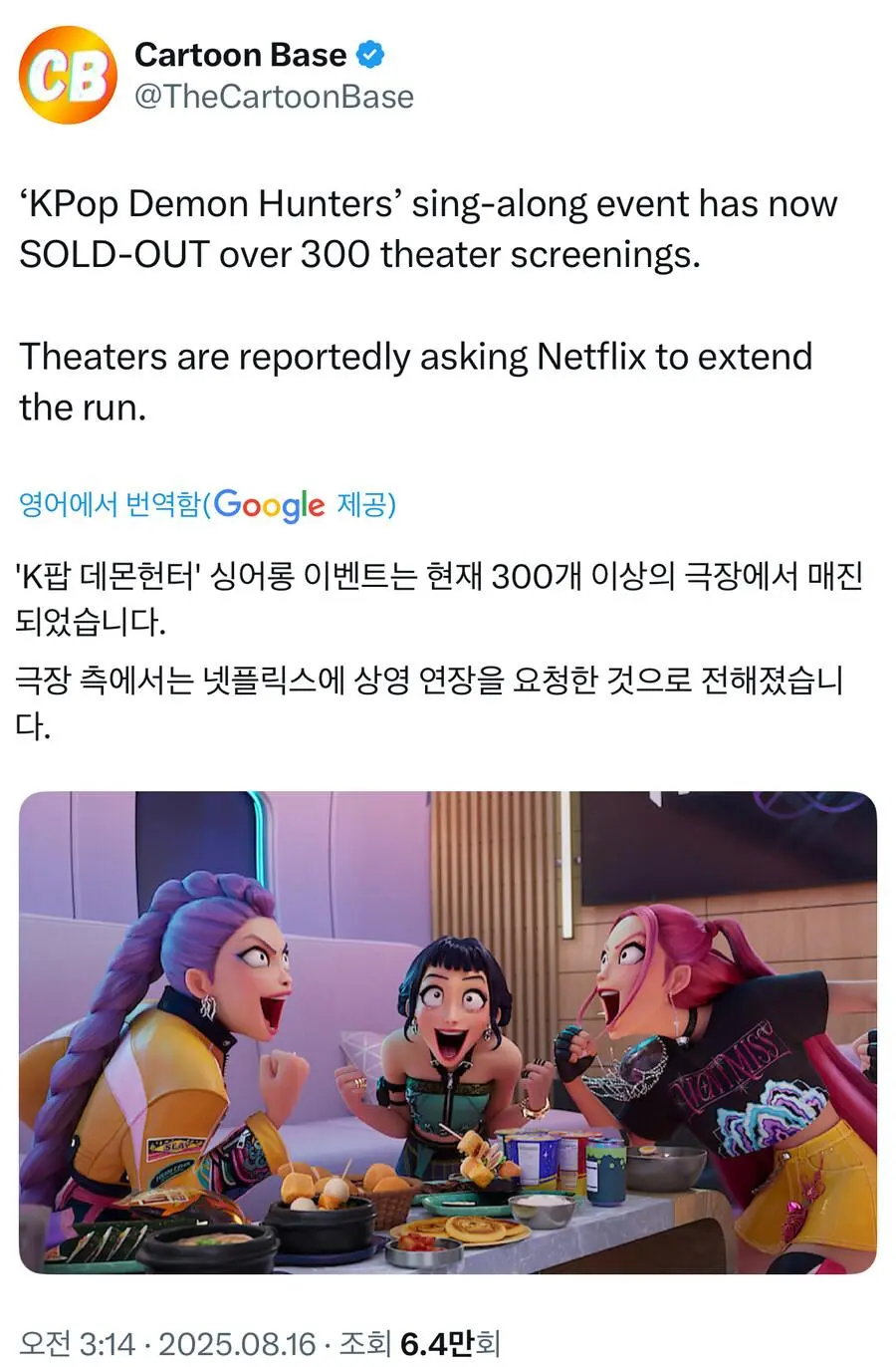 케데헌 싱어롱 극장 근황