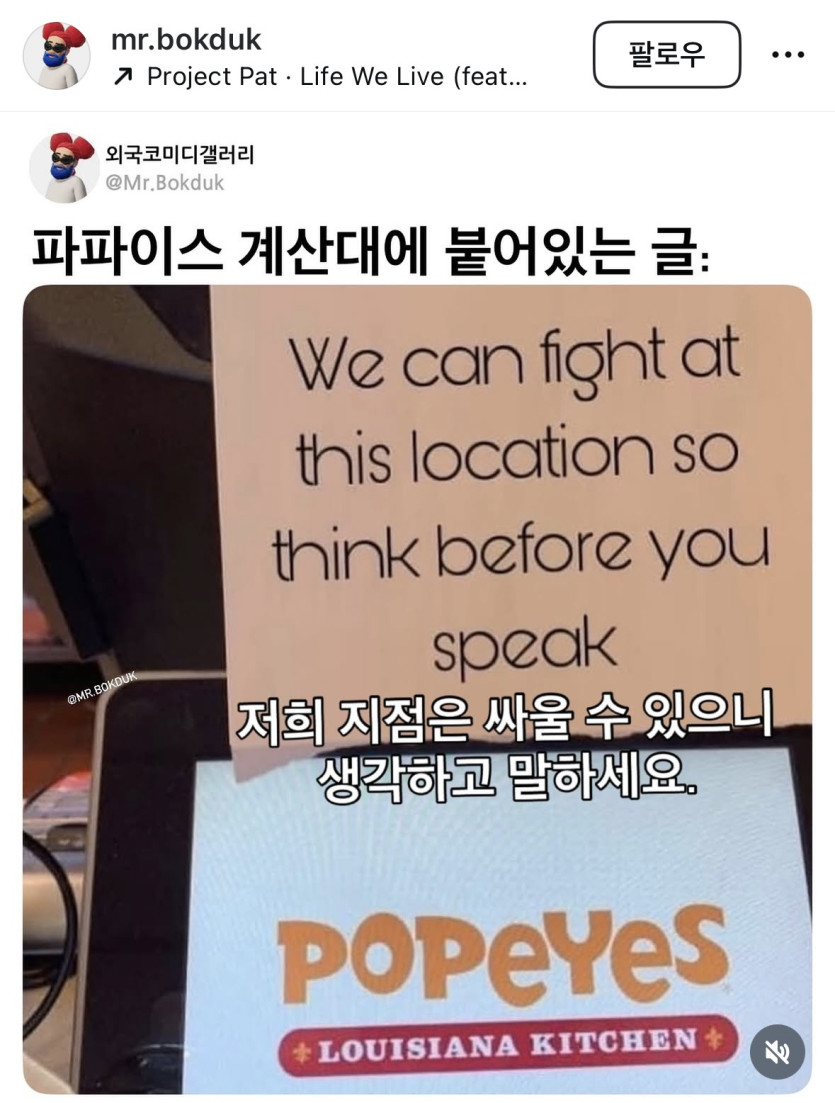 파파이스 계산대에 붙어있는 글
