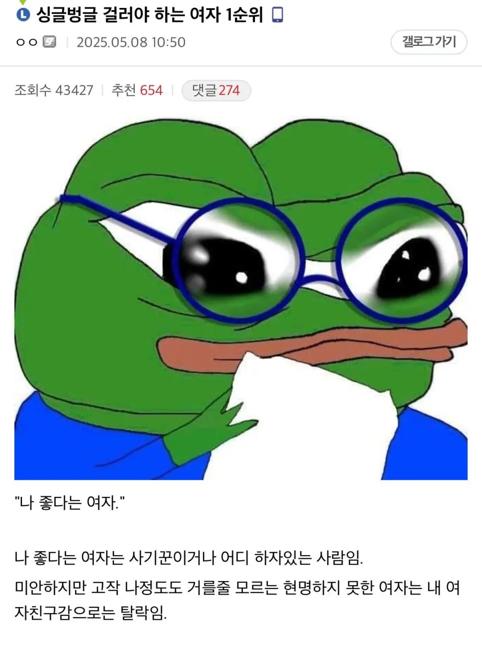 얼굴 이쁜 여자 1년, 몸매 3년, 성격 10년