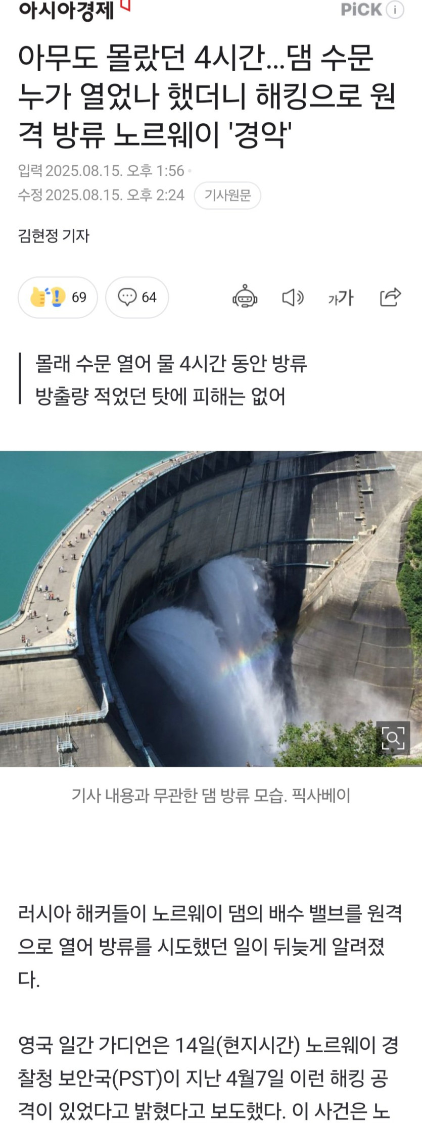해킹으로 댐 수문 원격 방류도 가능한 세상
