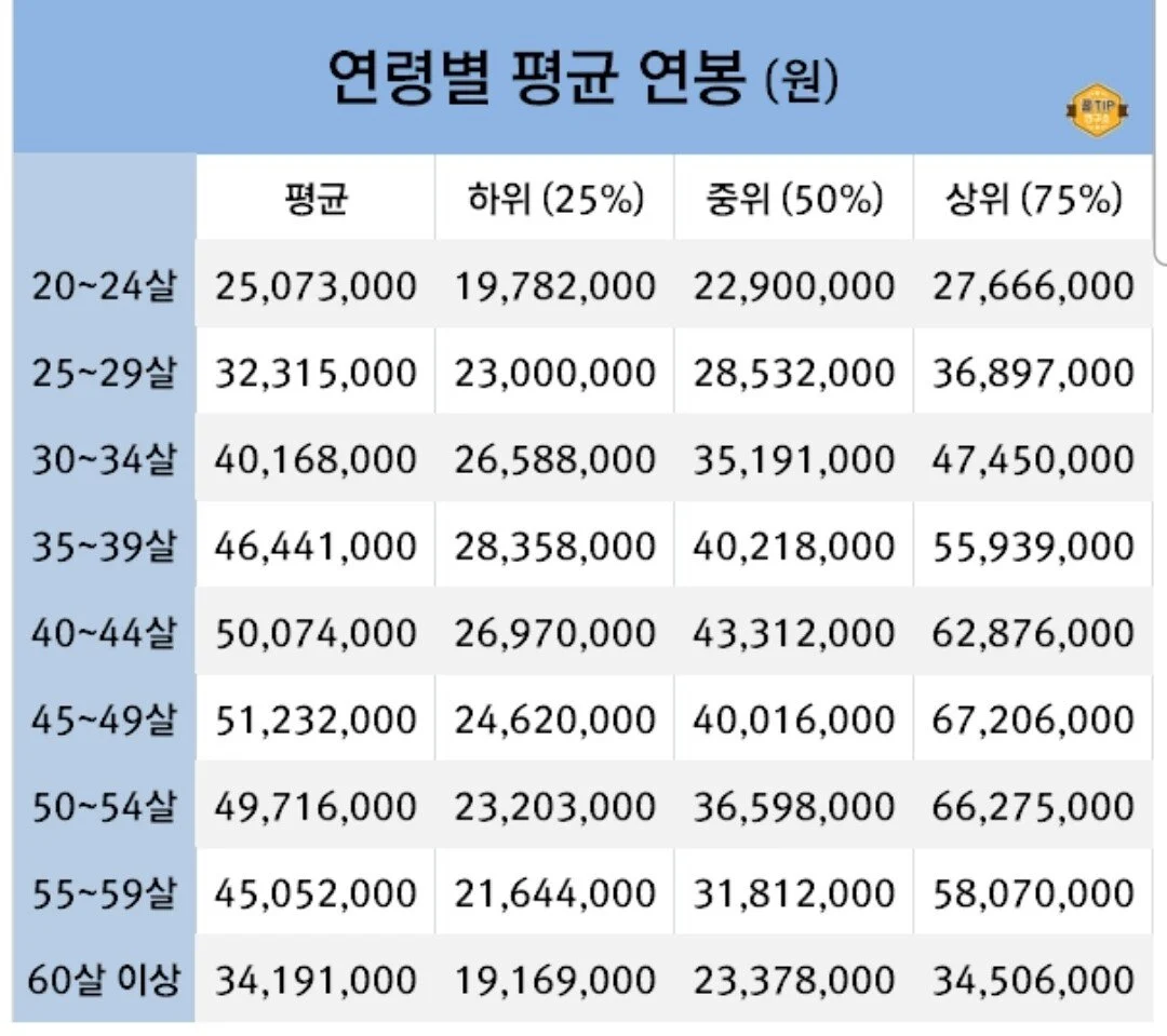 연령별 평균연봉