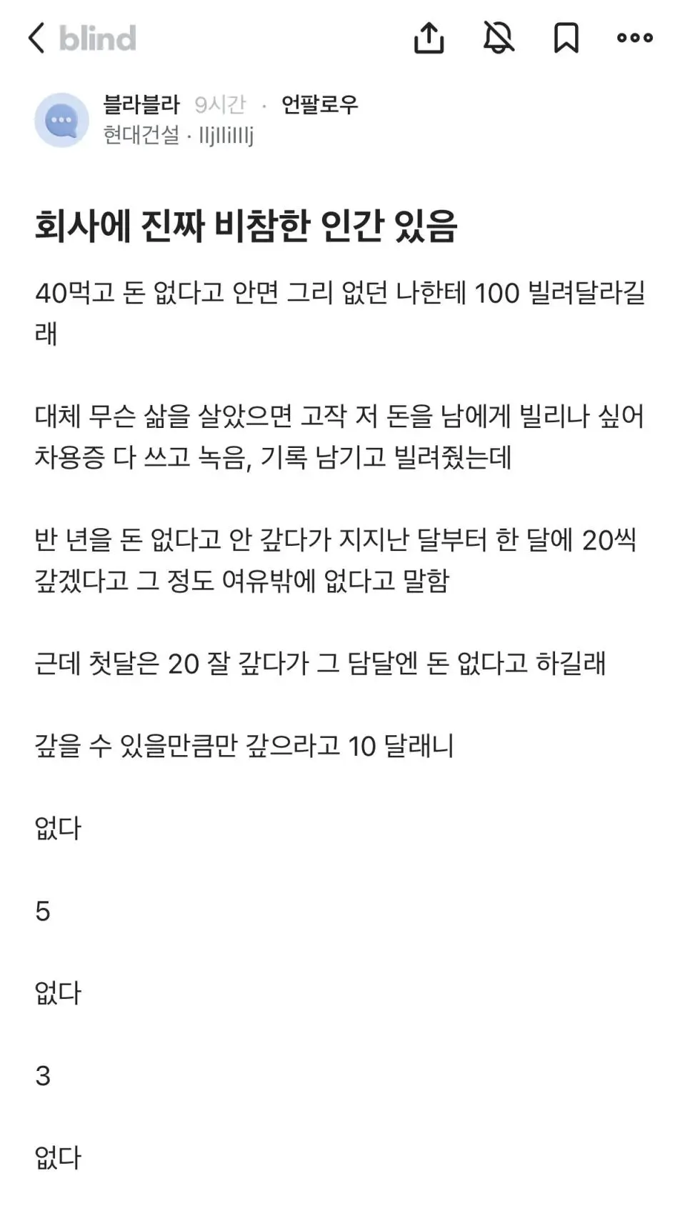 회사에 진짜 비참한 인간있다는 현대건설.blind