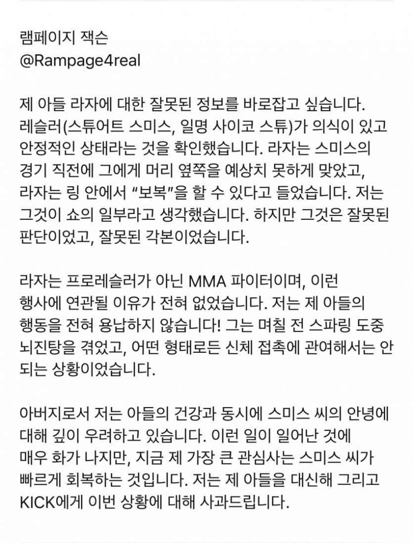 그 이후 퀸튼 잭슨의 입장문
