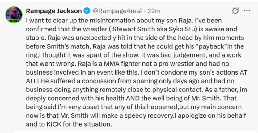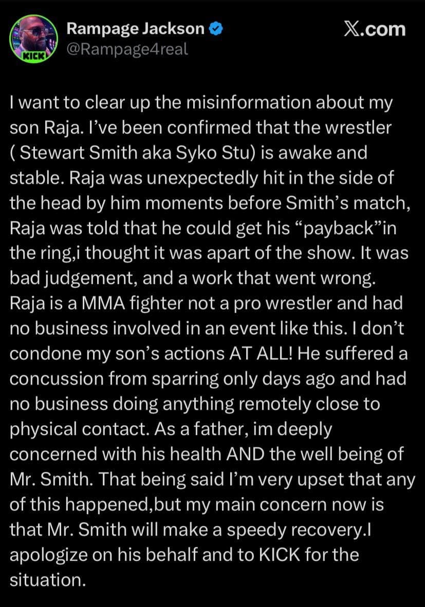 혐) 퀸튼 잭슨 아들 라자잭슨이 레슬링 무대난입 후 폭행