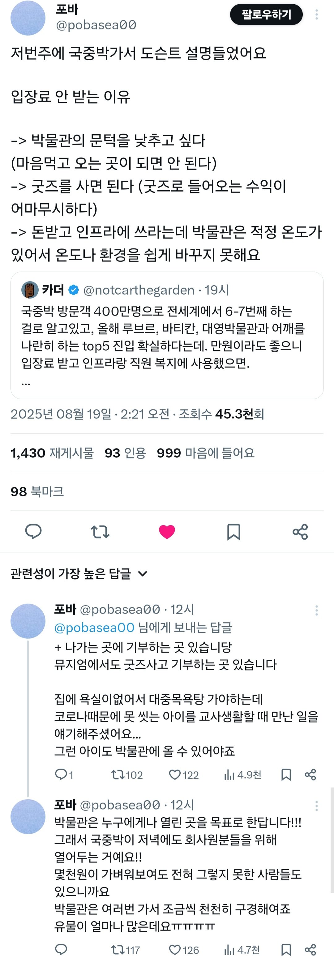 국중박이 입장료를 받지 않는 이유
