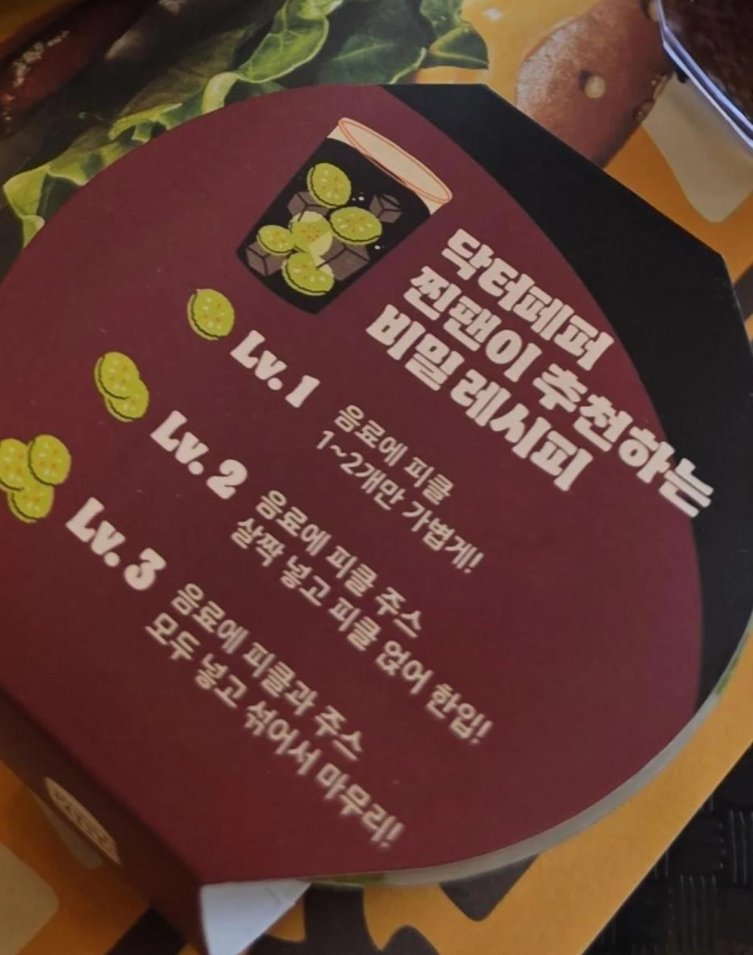 버거킹 그 음료 후기들 꼬마야놀자 0 1008 0 0 08.18 14:00 주소복사 복사되었습니다! 달고 시고 먹을만하다고 함. 먹을만한데? 닥페맛은 안남 그냥 신맛 안나는 피클 쥬스? 느낌임 오이향 좀 나니까 오이 싫어하면 먹지마라 생각보단 먹을만해서 놀랬음 내 돈 내고 다시 먹을 생각은 하나도 안들고 추천하기도 애매함 특이한거 좋아하면 한번 츄라이는 해볼만함 0 0