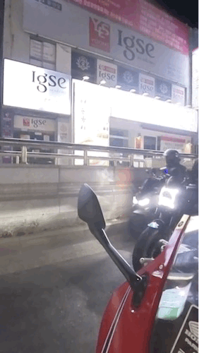 오토바이에서 내리는 순간 보행자로 취급되서 합법이라고 함