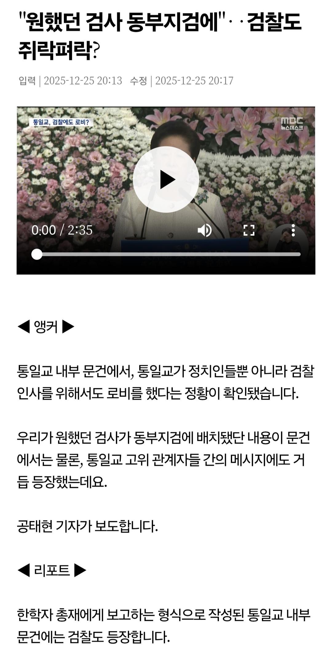 통일교 , 우리가 원했던 검사가 동부지검에.. 레유 0 49 0 0 12.26 07:15 주소복사 복사되었습니다! 통일교 대단하네요... 대통령, 국짐당대표, 국짐시도의원, 국회의원,검찰까지.... 댄민국을 쥐락펴락하는 어마무시한 종교 단체입니다... 통일교 장학생중에 판사도 있을 듯.. 0 0