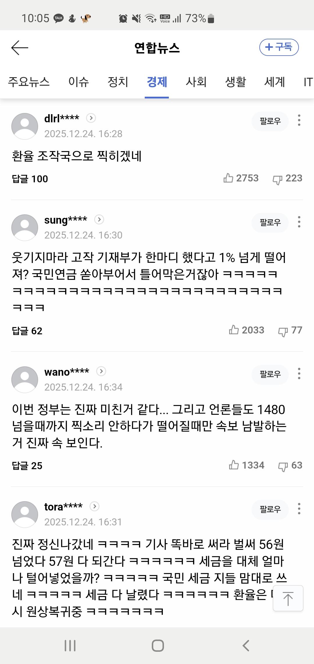 이제는 환율 조작국 바다123 0 69 0 0 12.25 13:15 주소복사 복사되었습니다! 국민연금으로 환율 조작했다고 선동하질 않나 ㅋ 네이버 뉴스 댓글 보면 네일베 통일교 신천지 점령 하긴 했네... 사이비종교 전체 특검을 해야됨. 0 0