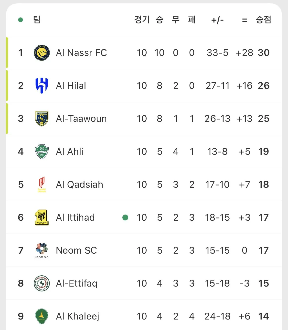 사우디 프로 리그 역사상 첫 리그 개막 후 10연승 달성