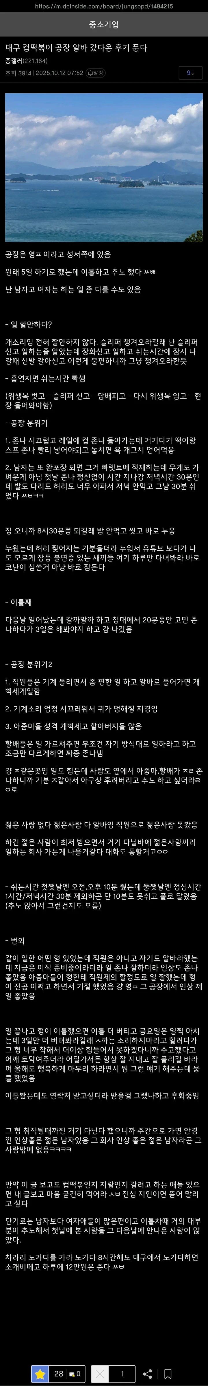 대구컵떡볶이 공장 알바 후기