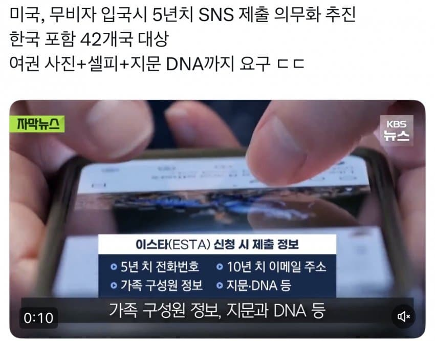 미국, 무비자 입국 시 5년치 SNS 제출 의무화 추진
