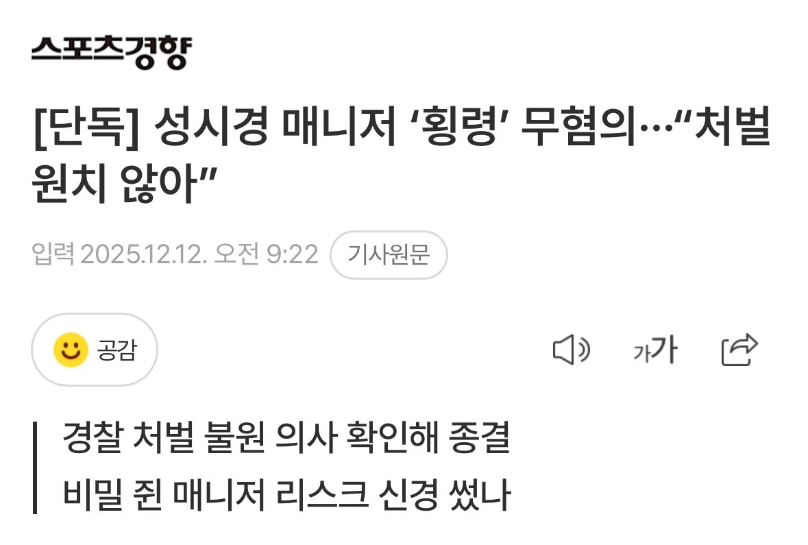 성시경, "매니저 처벌 말아달라" 처벌 불원서 제출...무혐의로 사건 종결