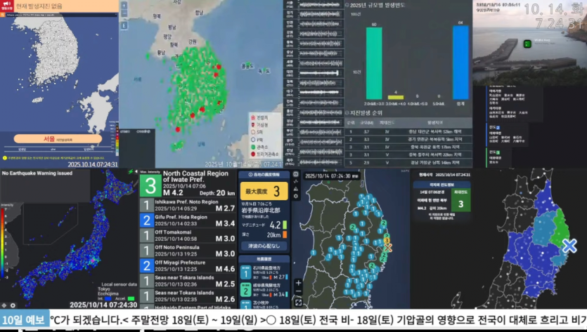 [지진 소식] 일본 이와테 현 북부, 규모 4.2 진도 3 지진 발생