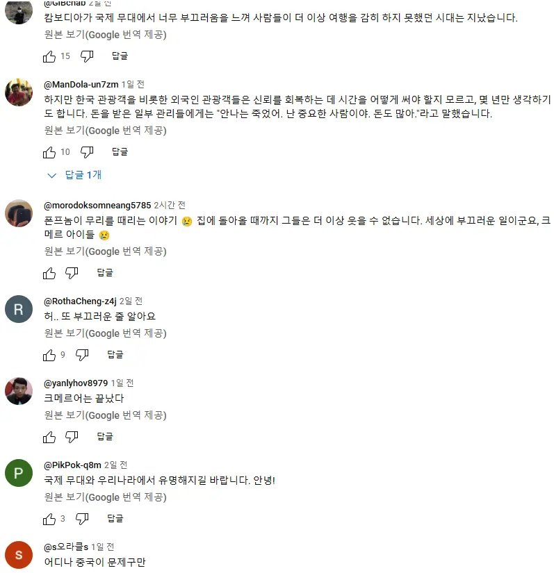 이 사태에 대한 캄보디아 커뮤 반응.jpg 직딩의하루 0 7 0 0 2시간전 주소복사 복사되었습니다! 진짜로 반한하는 무지렁이들도 있겠지만 완전히 저런 보도와 같이 생각하는건 좀 고민을 해야할듯.. 0 0