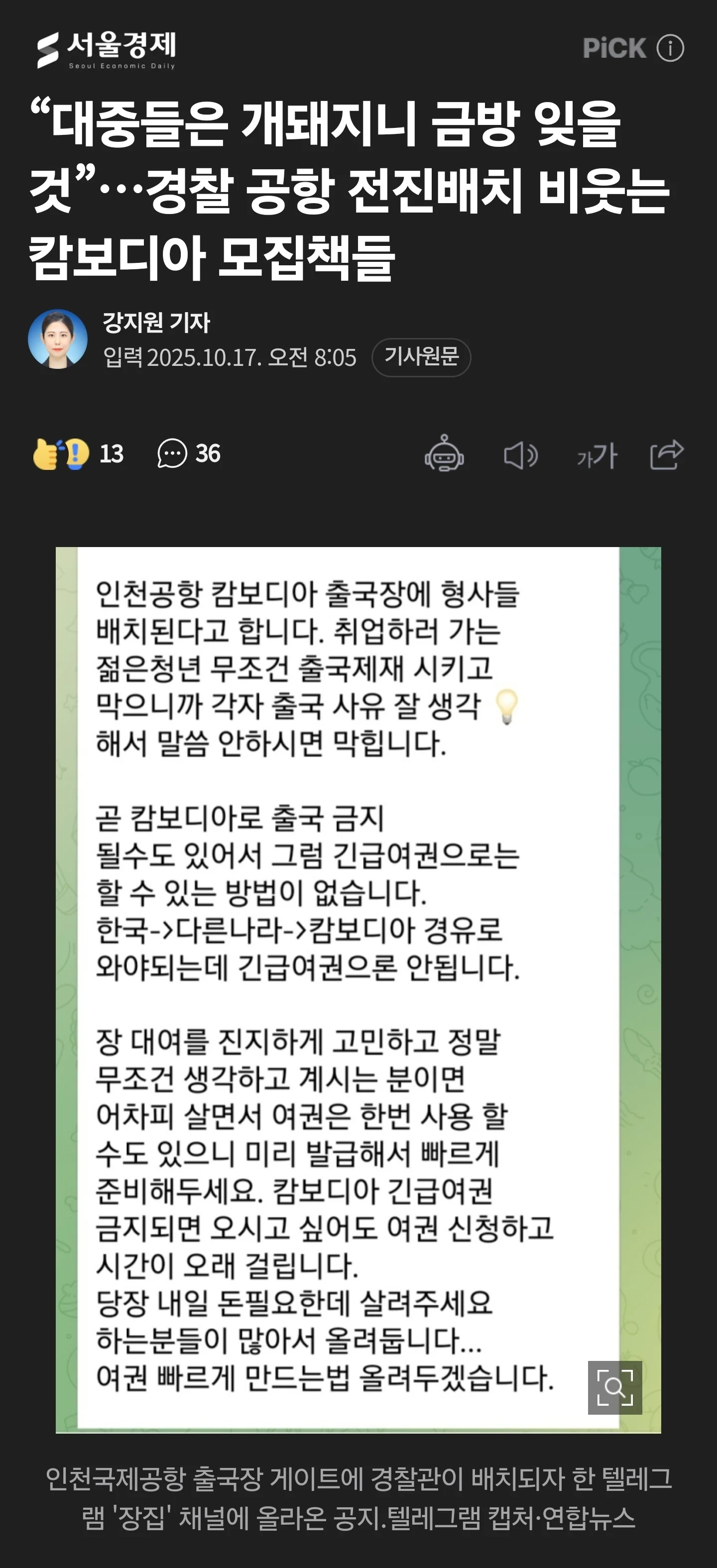 인천공항 경찰배치... 캄보디아 모집책 비웃음