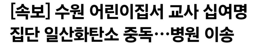 [속보] 수원 어린이집서 교사 십여명 집단 일산화탄소 중독…병원 이송