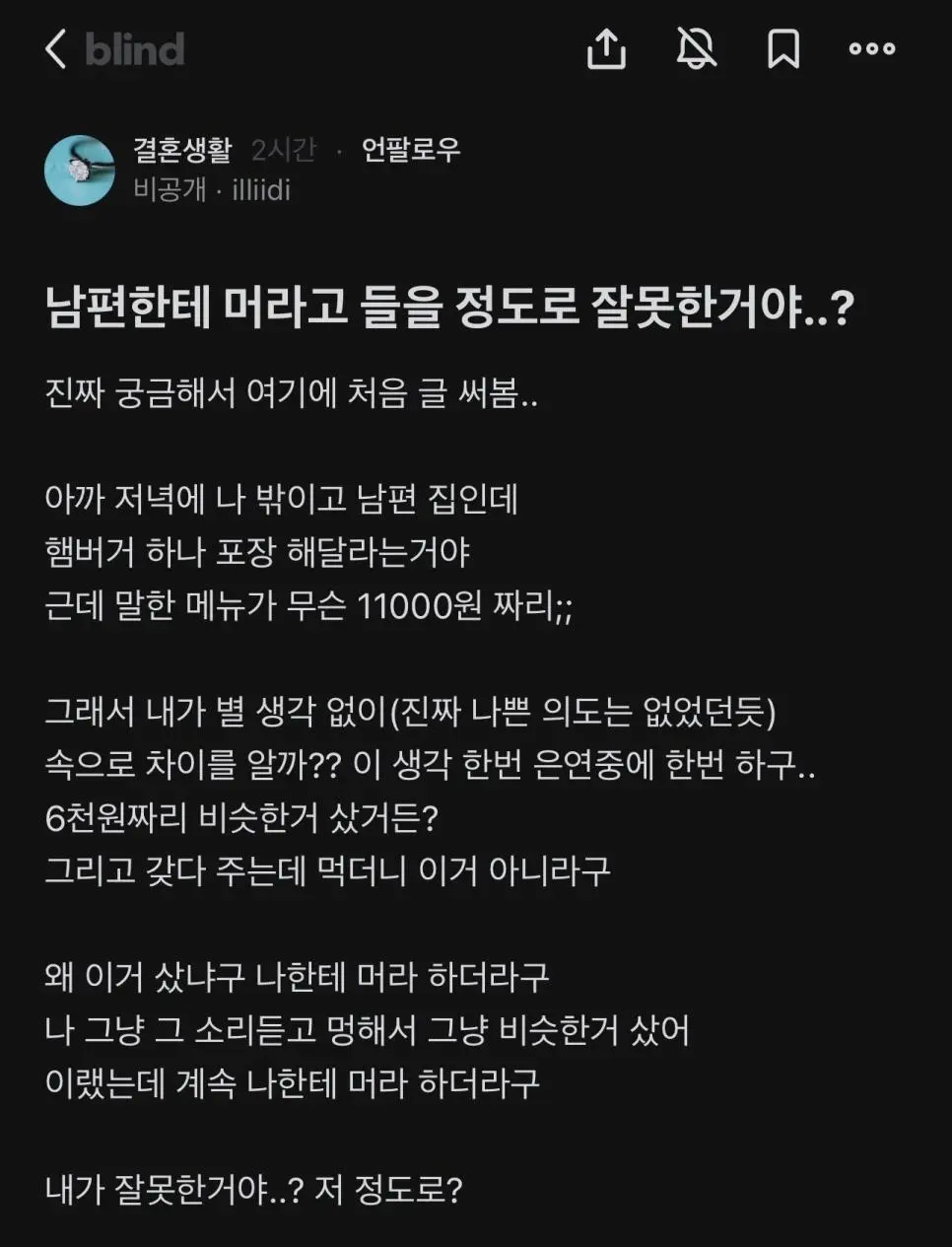남편한테 머라고 들을 정도로 잘못한거야..?