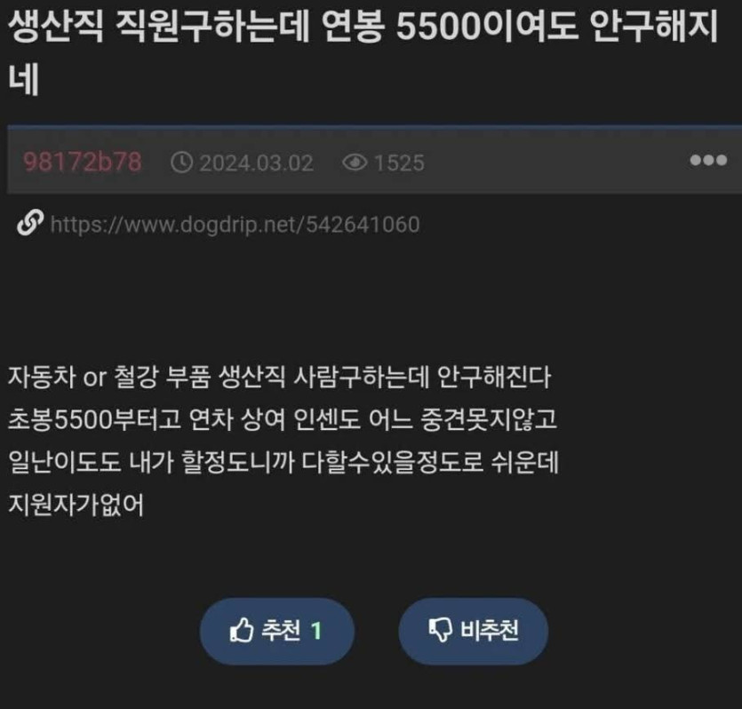 생산직 직원구하는데 연봉 5500이여도 안구해지네.jpg