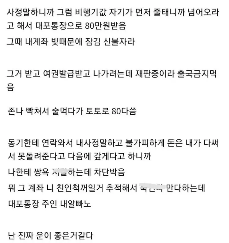 기묘하고 어이없는 운으로 캄보디아 트랩에 안걸린 남자