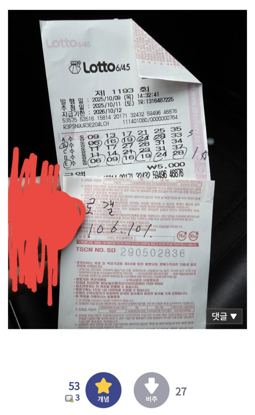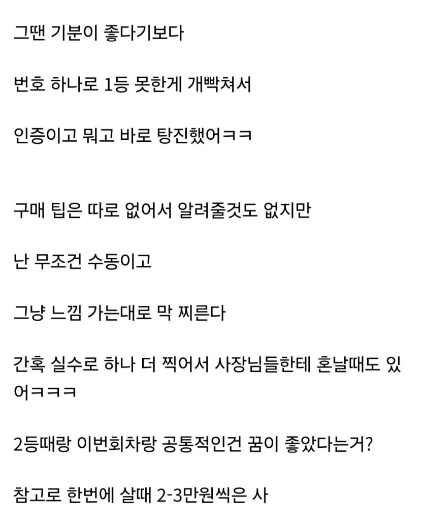 로또 1등 당첨 인증한 로또 갤러리 유저