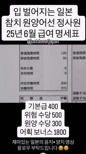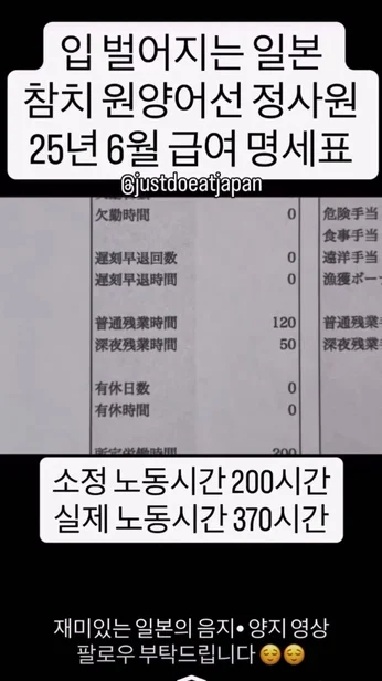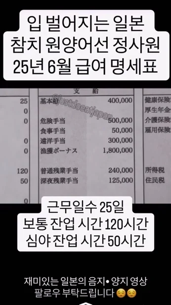 일본 참치 원양어선 정사원 25년 6월 급여명세서