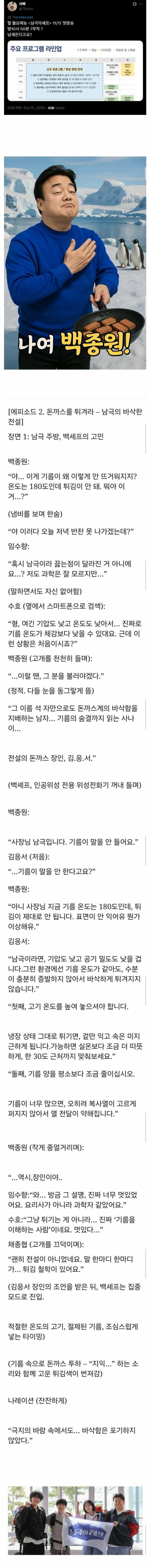 곧 첫방송 될 '남극의 셰프' 대본 예상